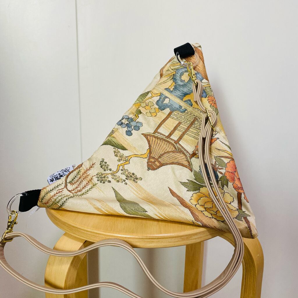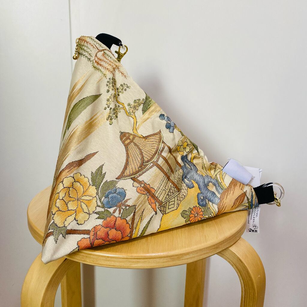 着物帯を使用した三角バッグです。